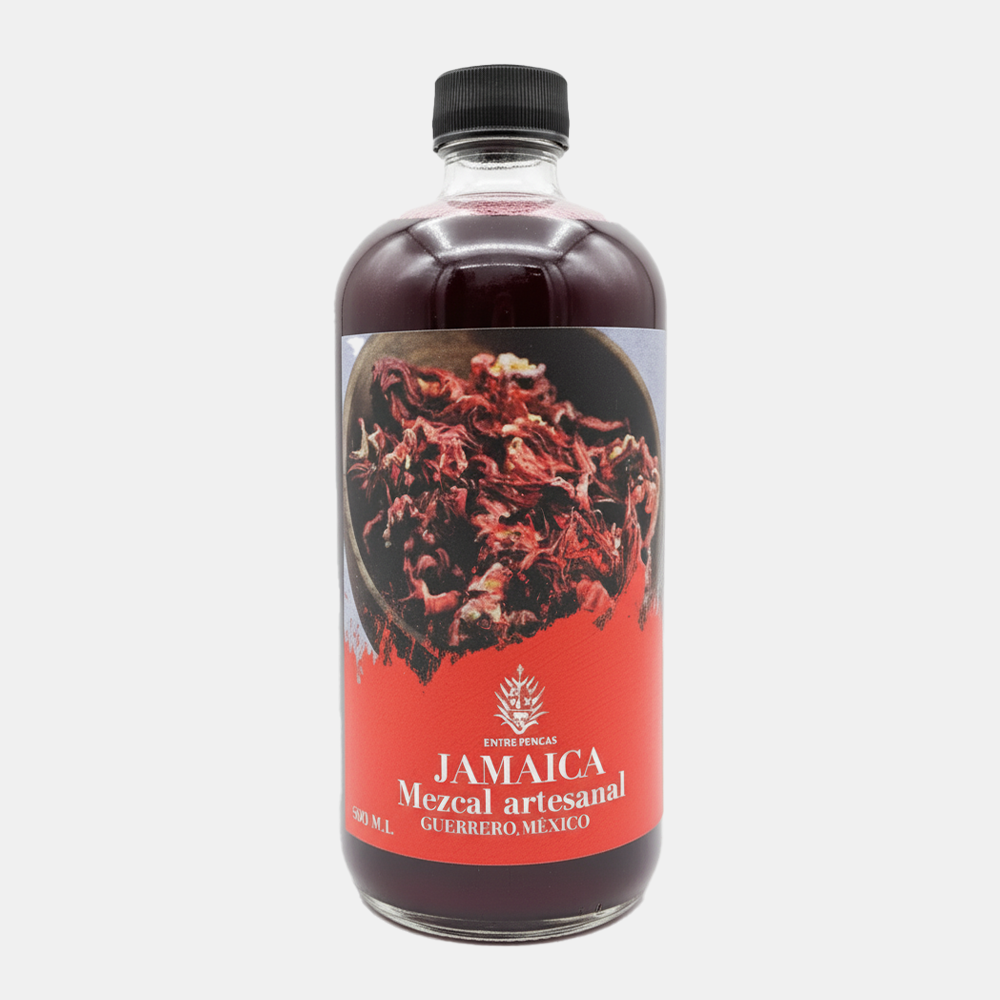 Mezcal artesanal infusionado con flor de jamaica. Sabor floral, cítrico y ligeramente ácido, ideal para cocteles frescos o disfrutar solo.